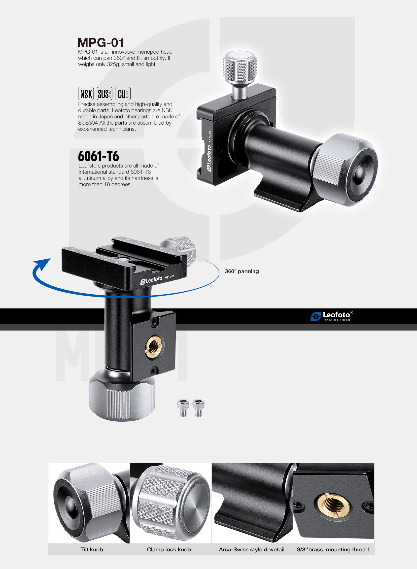 - Model: Leofoto MPG-01 Side Mount Monopod Head