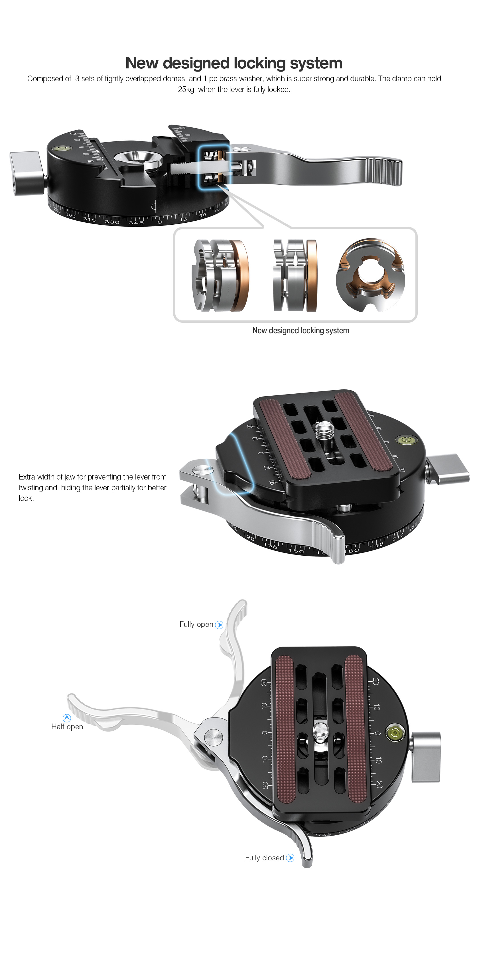 - Twist-to-lock levers provide precise control